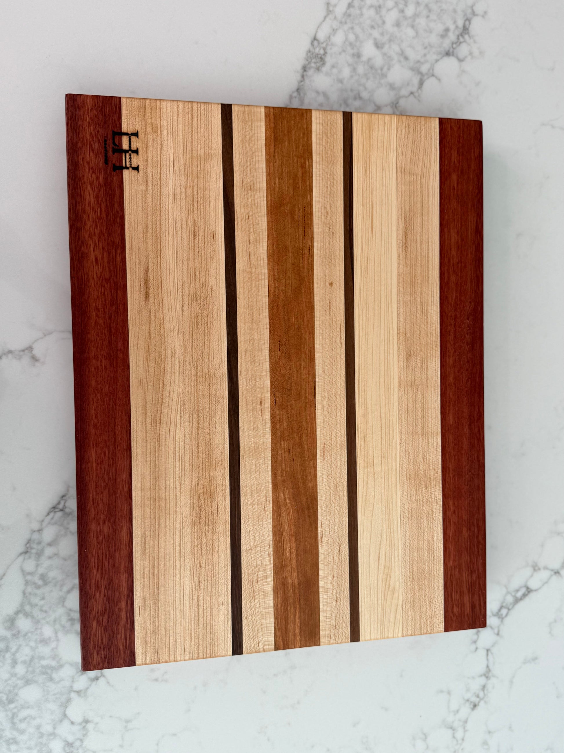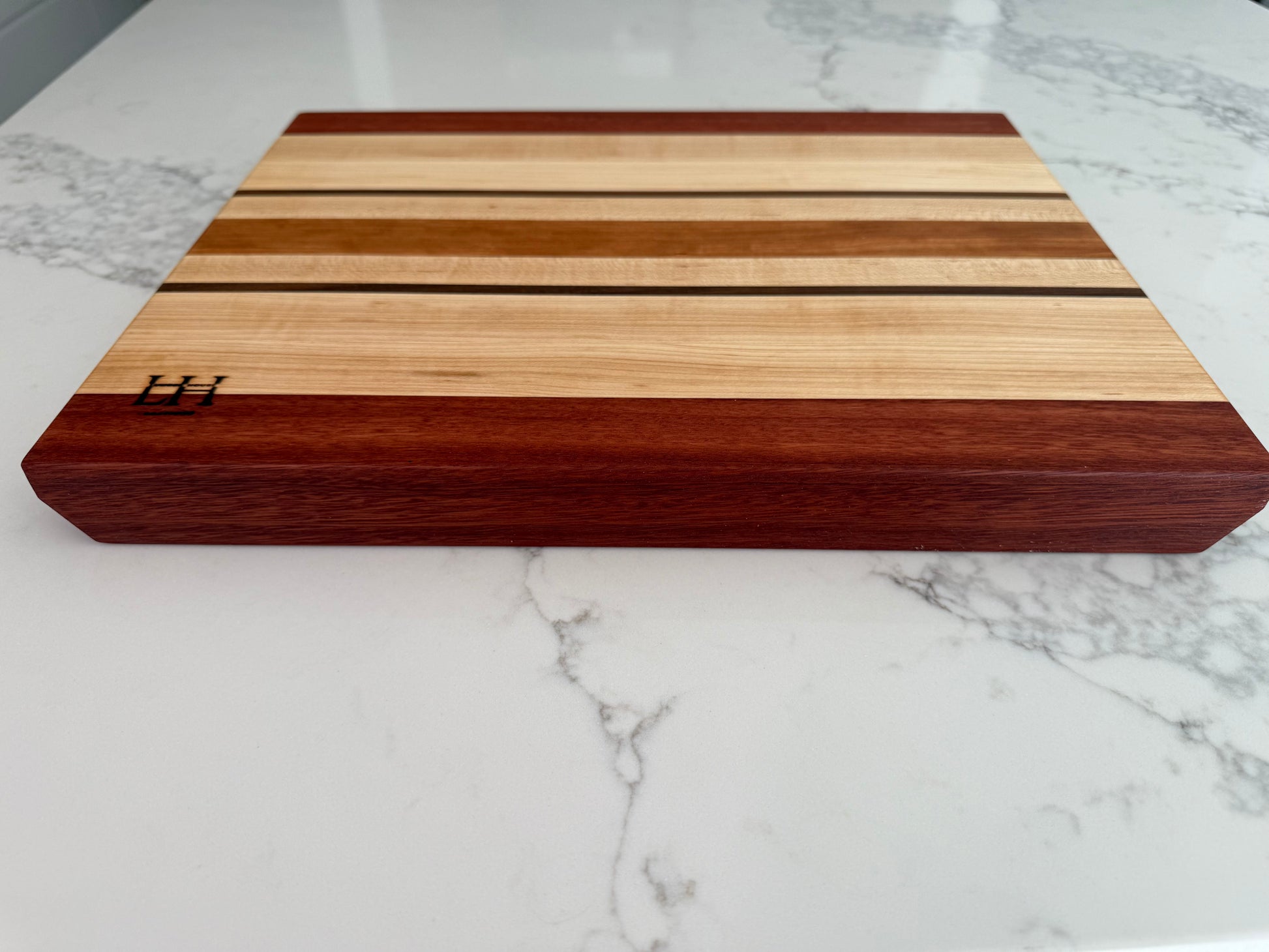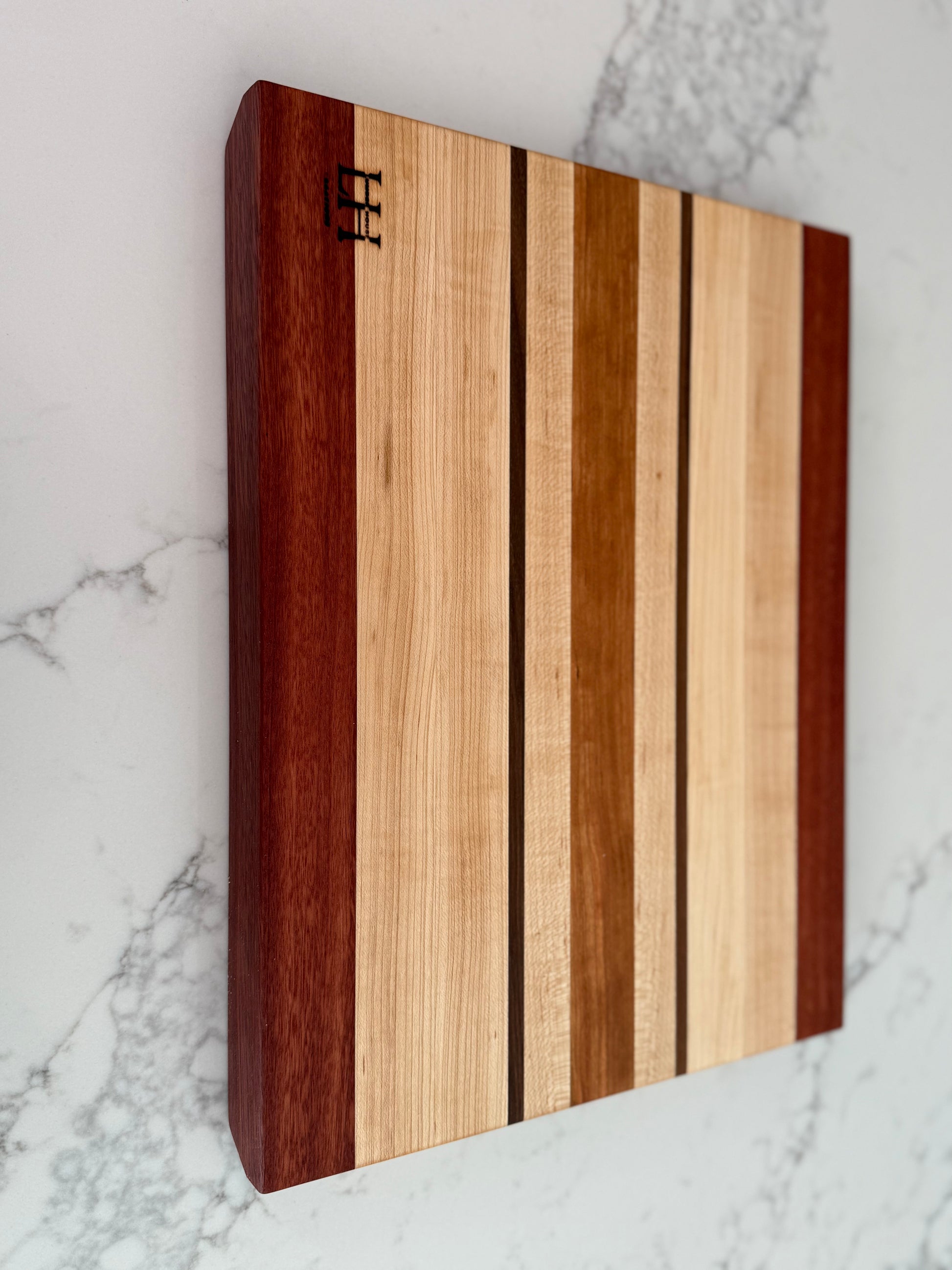 Each board is a unique work of art, showcasing the vibrant colors and textures of premium hardwoods. Perfect for home chefs or as a thoughtful, handcrafted gift.